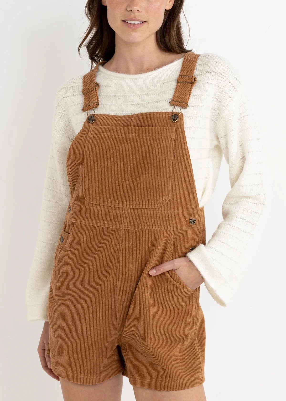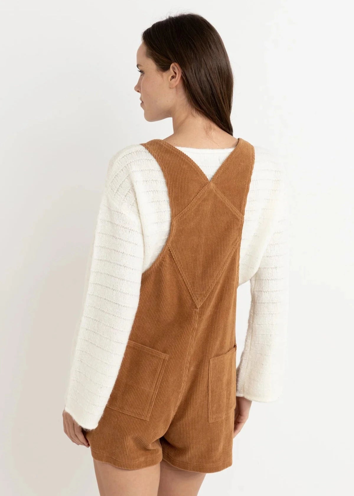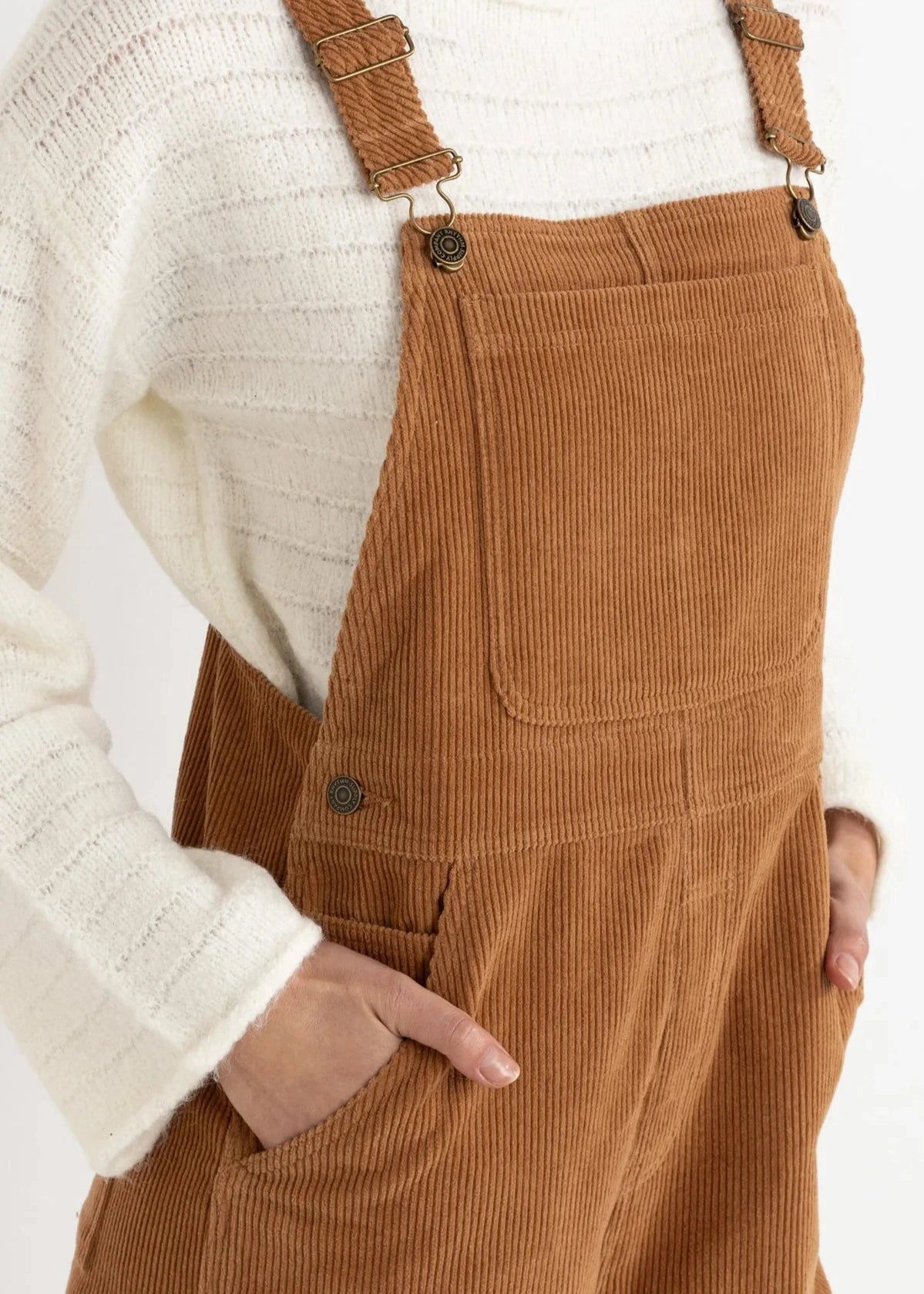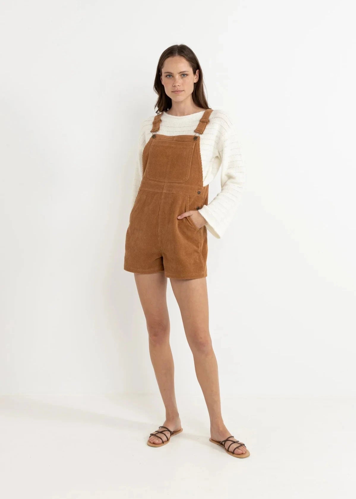 Crafted for effortless wear, the Cord Tide Short Overall in Brown offers a relaxed, easy fit with side entry and back patch pockets. The loose-fitting leg creates an A-line silhouette, perfect for casual layering