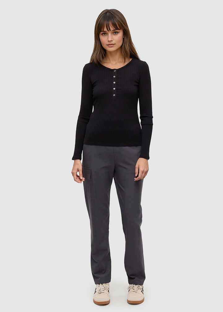 Soft and stretchy with a classic slim fit, this henley does basic better — with a wide rib knit and a contrast woven placket for just the right amount of detail