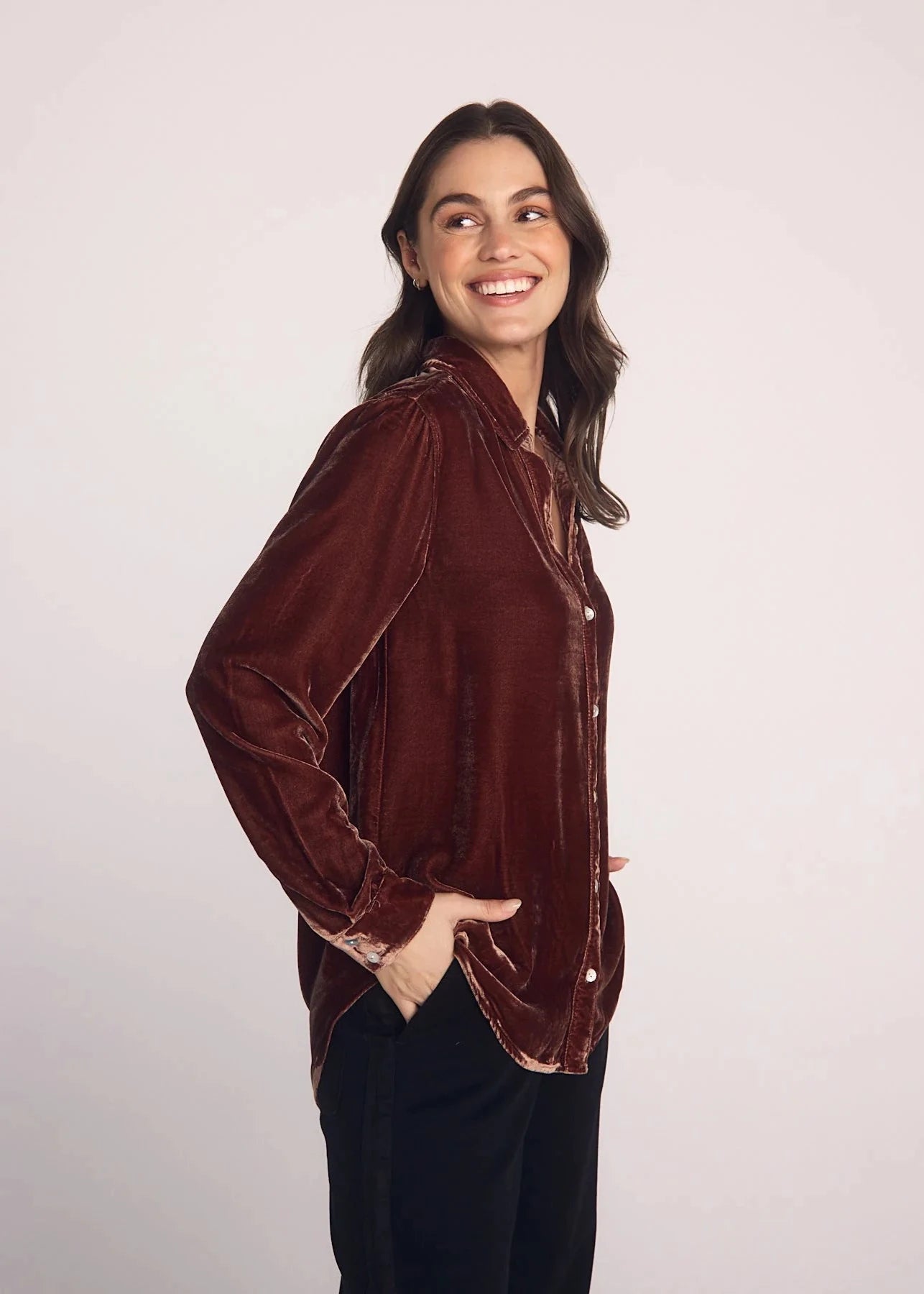 Easy and elevated, the Long Sleeve Classic Shirt is a fall staple. Crafted from a silk blend for soft texture and airy comfort. Classic button-down silhouette with a polo collar, front button closure, and buttoned cuffs for a timeless finish. Relaxed fit makes it perfect for everyday wear.