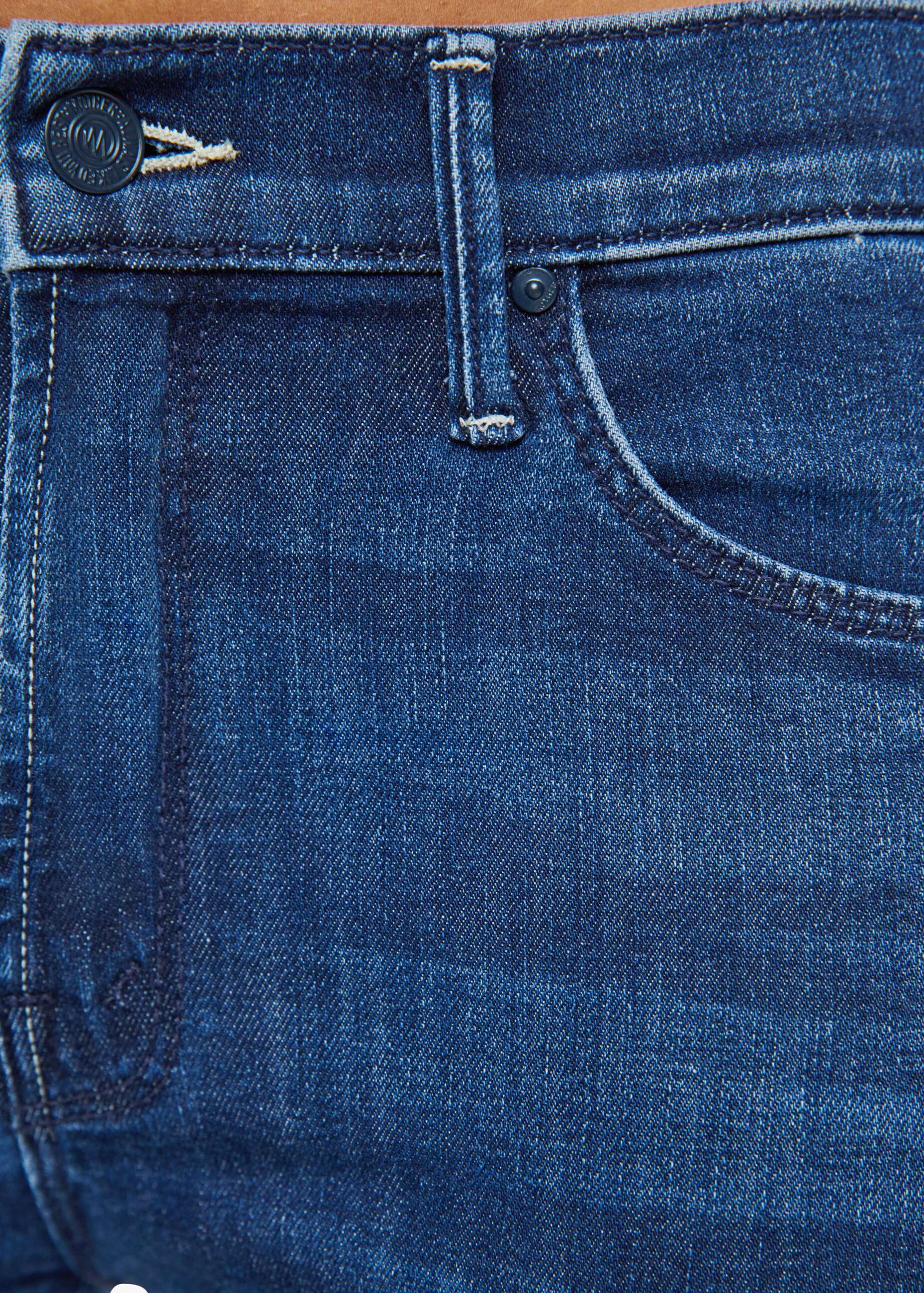 Surprise, surprise. Our most popular mid-rise straight leg hits at the ankle with a frayed hem. Made from stretch denim, Fancy Meeting You Here is dark blue with subtle whiskering and fading at the knees